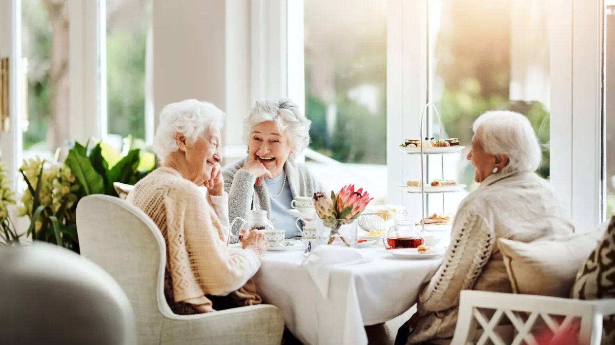 Shot of happy senior women having tea together at a retirement home