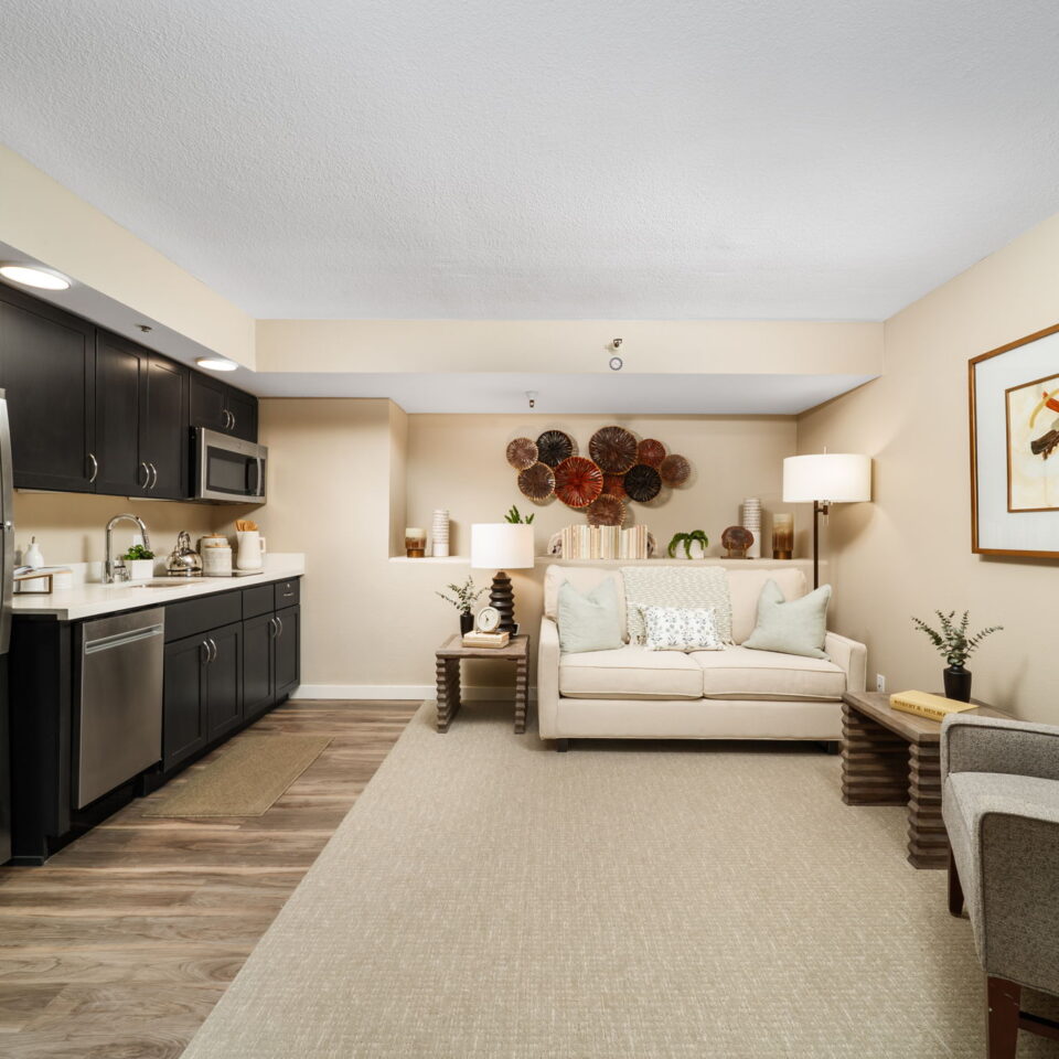 Our renovated assisted living and memory care apartment homes are designed to be bright, spacious, and comfortable, ensuring you feel right at home in your private studio, one-bedroom, or two-bedroom suite. Each residence offers a range of exceptional features to enhance your living experience: