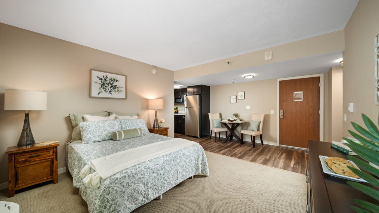 Our apartment homes are bright, spacious and comfortable. With upgraded features and large windows, you will feel right at home in your private studio, one-bedroom or two-bedroom suite.